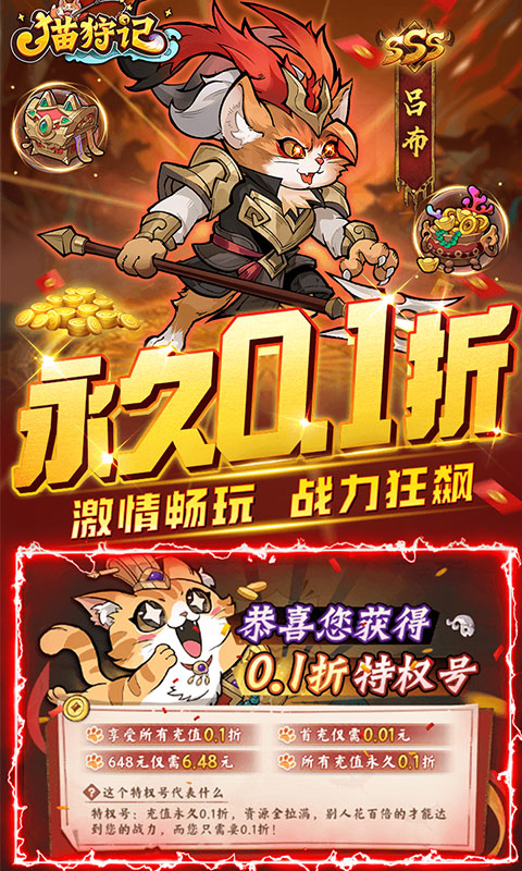 多维养成:提升主公等级、猫将等级、星级、装备、官印、战魂、鱼灵等均可大幅提升战力。鱼灵和官印等还能提供特殊技能。